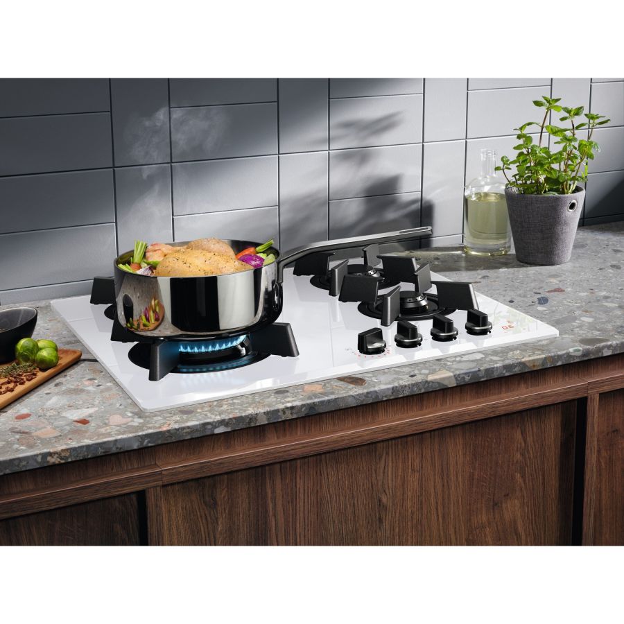 a Gas Electrolux Kgg643753W Flamelight Piano cottura gas Electrolux 949 640 937 SERIE 800 Kgg6437 29BB0874176LED chiari e luminosi per una facile scelta del livello della fiamma