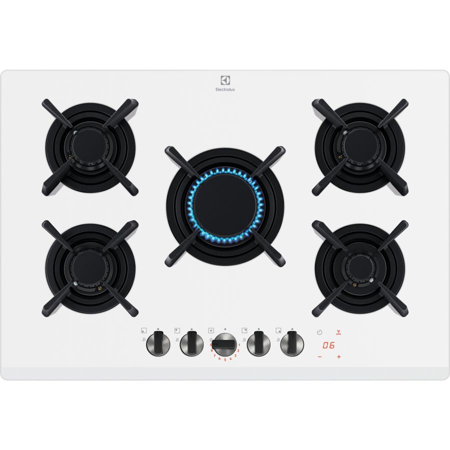 a Gas Electrolux Kgg753753W Flamelight Piano cottura gas Electrolux 949 630 963 SERIE 800 Kgg7537 29BB0874174LED chiari e luminosi per una facile scelta del livello della fiamma
