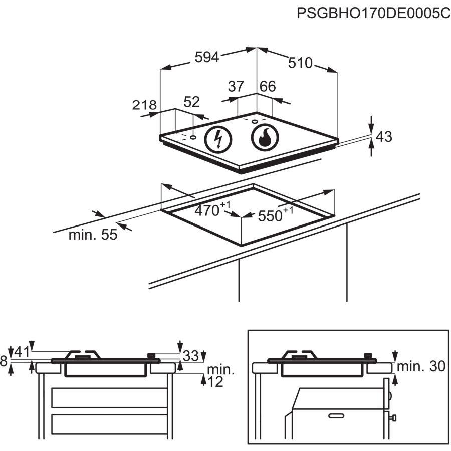 a Gas Electrolux Kgs6404B Slim Side Control Piano cottura gas Electrolux 949 640 891 SERIE 300 Kg 29BB0840495Installazione più rapida, maggiore controllo