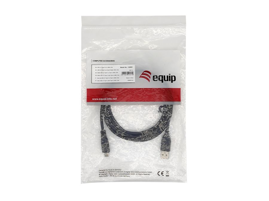 CAVI DATI Equip USB 2.0 A TO C, M/M, 0.5M 128831 128831128831. Lunghezza cavo: 0,5 m. Connettore 1: USB A, Connettore 2: USB C, Versione USB: USB 2.0, Massima velocità di trasferimento: 0,48 Gbit/s, Placcatura contatti: Nichel, Colore del prodotto: Nero