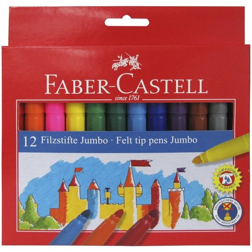 Pennarelli Faber Castell CASTELLO JUMBO CF12 PENNARELLI IL 554312 554312Pennarelli con inchiostro atossico a base d?acqua, punta sottile. Dermatologicamente testati. Lavabili dalla maggior parte dei tessuti. Cappuccio ventilato anti soffocamento.