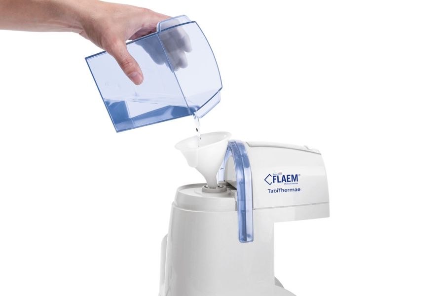 Trattamenti TABITHERMAE è l'apparecchio per le inalazioni termali caldo-umide adatto alle cure domiciliari Nebulizza 1 lt di acqua termale in soli 8-10 minuti con una granulometria delle particelle simile a quella degli stabilimenti termali.