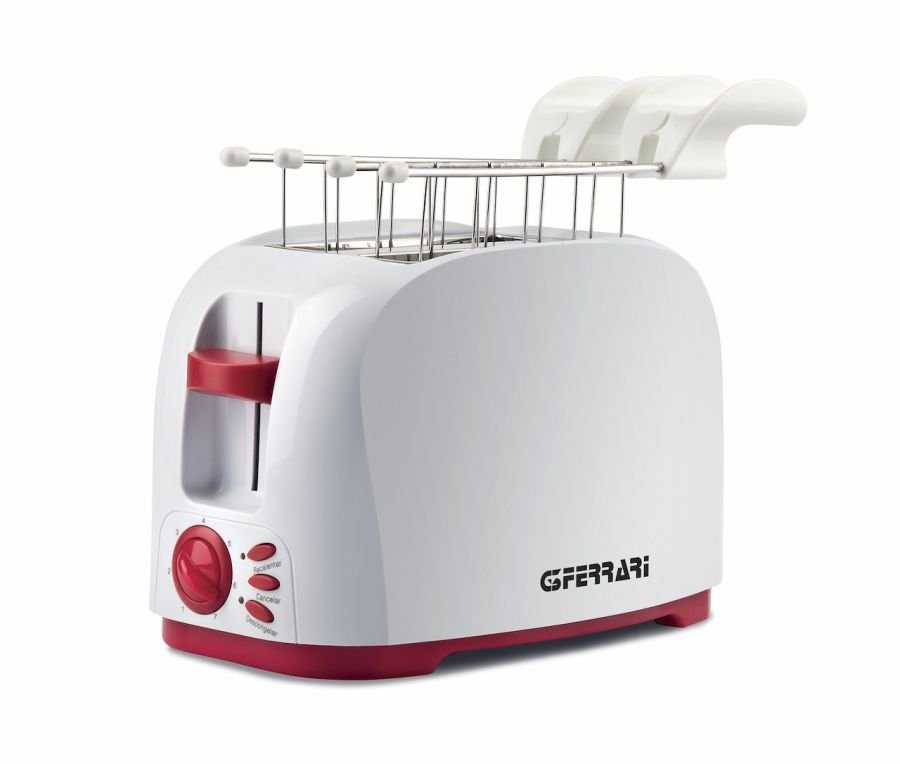 Tostapane G3 Ferrari G10179 Tostapane 7 Livelli di Cottura 2 Fette Potenza 800 W Rosso/Bianco 02USHW1T17Il tostapane G3 Ferrari To-Stàr G10179 da 800W è dotato di pinze in acciaio inox e 7 livelli di cottura. Con tre funzioni (scongelamento, riscaldamento e cottura) e un vassoio raccogli-briciole, è perfetto per tostare in modo uniforme e facile da pulire.
