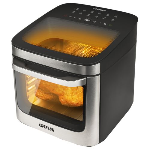 Friggitrice ad aria con flusso posteriore, capacita massima 13 Lt, luce interna, temperatura regolabile da 30 a 200 gradi, 12 programmi preimpostati + manuale, timer fino a 60 min, funzione essiccatore, potenza 1800W, accessori in dotazione: 3