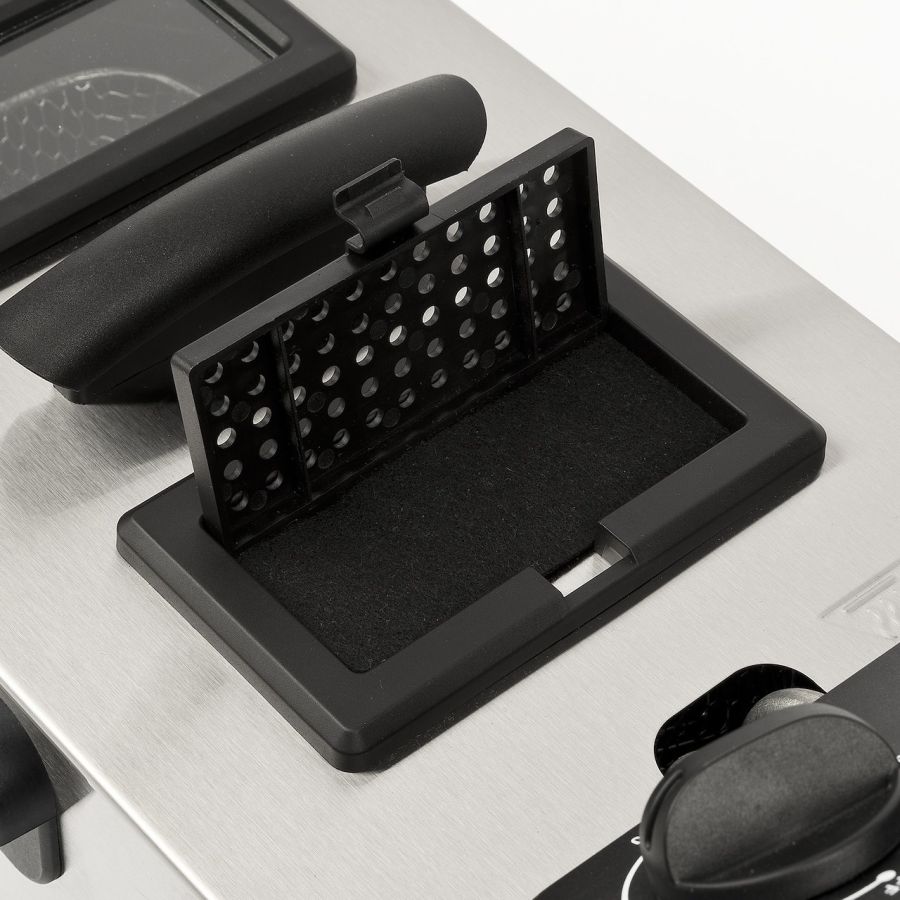 Friggitrici G3 Ferrari G10203 PASTELLA G1020300-10La friggitrice elettrica PASTELLA è ideale per ottenere un fritto sempre croccante e delizioso, senza sporcare e lasciare odori in casa. Facile e veloce da pulire grazie alla possibilità di smontare ogni componente, PASTELLA è equipaggiata con termostato regolabile, coperchio con finestra trasparente e filtro anti-odori, e contenitore smaltato antiaderente da 3 litri.