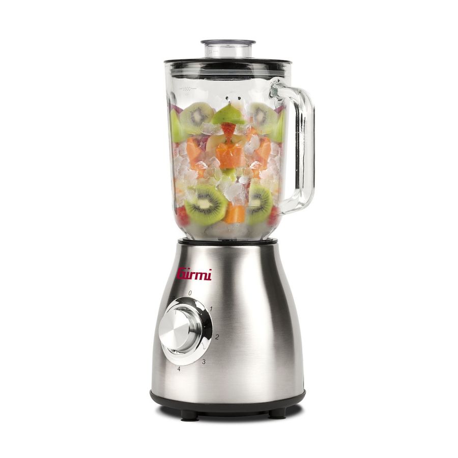 Altre caratteristiche ? Potenza: 550-650W ? Bicchiere in vetro graduato, Capacità 1, 5 lt ? 6 Lame frantuma ghiaccio inox ? 4 Velocità + PULSE ? Sicurezza di funzionamento nell?alloggio del bicchiere ? Corpo acciaio inox ? Coperchio con guarnizione, Piedini antiscivolo