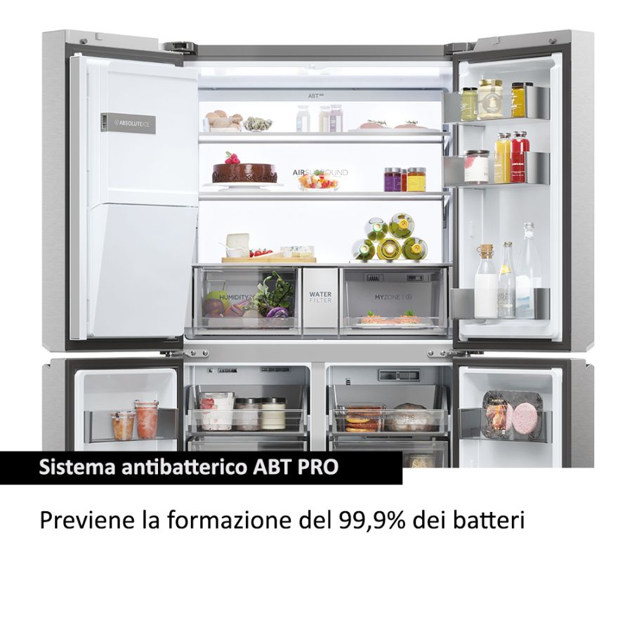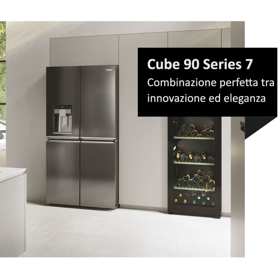 Doppi americani Haier HCR7918EIMP 34004988-78Il frigorifero a quattro porte Cube 90 è disponibile in diverse finiture, una più elegante dell?altra. Con una larghezza di 90 cm, è disponibile nella versione da 190 e da 200 cm di altezza. Il frigorifero a quattro porte Cube 90 cm è inoltre dotato delle funzioni Fresher Techs® più rivoluzionarie di Haier, le nostre innovazioni che mantengono la spesa più fresca più a lungo. I frigoriferi Haier Cube 90 Serie 7 assicurano la conservazione perfetta degli alimenti grazie alle zone dedicate dotate di tecnologie avanzate e ad altre funzionalità del frigorifero e del congelatore.