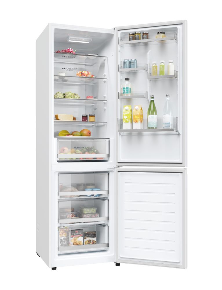 Doppi americani Haier HDW1620DNPW- FRIGO 2D 60 CM CL D 34005562 340055622D 60 Serie 1 HDW1620DNPW. Capacità netta totale: 377 L, Classe climatica: N-ST, Emissione acustica: 38 dB. Capacità netta frigorifero: 258 L, No Frost (frigorifero), Sistema Multi-Airflow (frigorifero), Luce interna, Numero di ripiani frigorifero: 5. Capacità netta congelatore: 119 L, Capacità di congelamento: 7 kg/24h, No Frost (congelatore). Compartimento zona fresca. Classe efficienza energetica: D, Consumo energetico annuo: 211 kWh. Colore del prodotto: Bianco