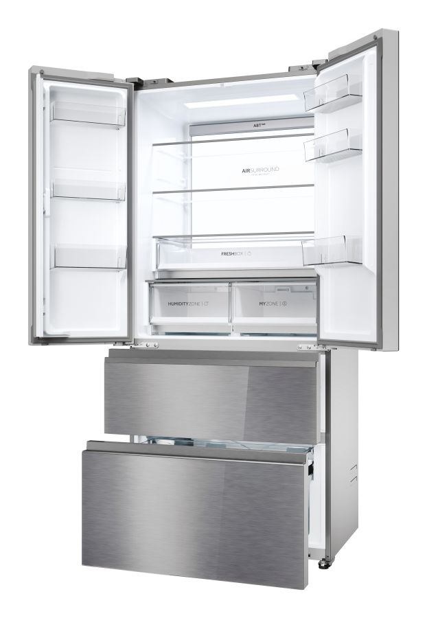 Doppia Porta Haier *HFR7819ENGC FRENCH DOOR 190X8 BA000002844HFR7819ENGC. Capacità netta totale: 504 L, Classe climatica: SN-T, Emissione acustica: 36 dB. Capacità netta frigorifero: 344 L, No Frost (frigorifero), Sistema Multi-Airflow (frigorifero), Luce interna, Numero di ripiani frigorifero: 3. Capacità netta congelatore: 160 L, Capacità di congelamento: 10 kg/24h, No Frost (congelatore). Compartimento zona fresca. Classe efficienza energetica: E, Consumo energetico annuo: 303 kWh. Colore del prodotto: Acciaio inox