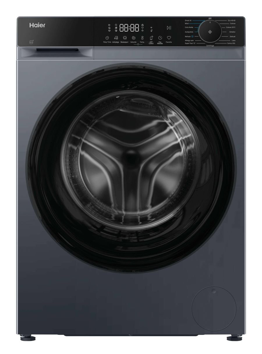 Lavatrici caricamento frontale Haier HW100BP14357GUIT TRN954977X Series 5, Lavatrice Carica Frontale 10 KG, 20% più efficente della classe A, 1400 giri, Antracite, AI PowerDrive, Vapore, Wi-Fi, Smart AI, Super Fast 15', HW100BP14357GUIT. Tipo di carica: Caricamento frontale. Capacità cestello: 10 kg, Classe di efficienza della centrifuga: B, Silenziosità (centrifuga): 72 dB, Velocità di centrifuga massima: 1400 Giri/min. Colore del prodotto: Antracite. Larghezza: 595 mm, Profondità: 559 mm, Altezza: 850 mm. Classe efficienza energetica: A