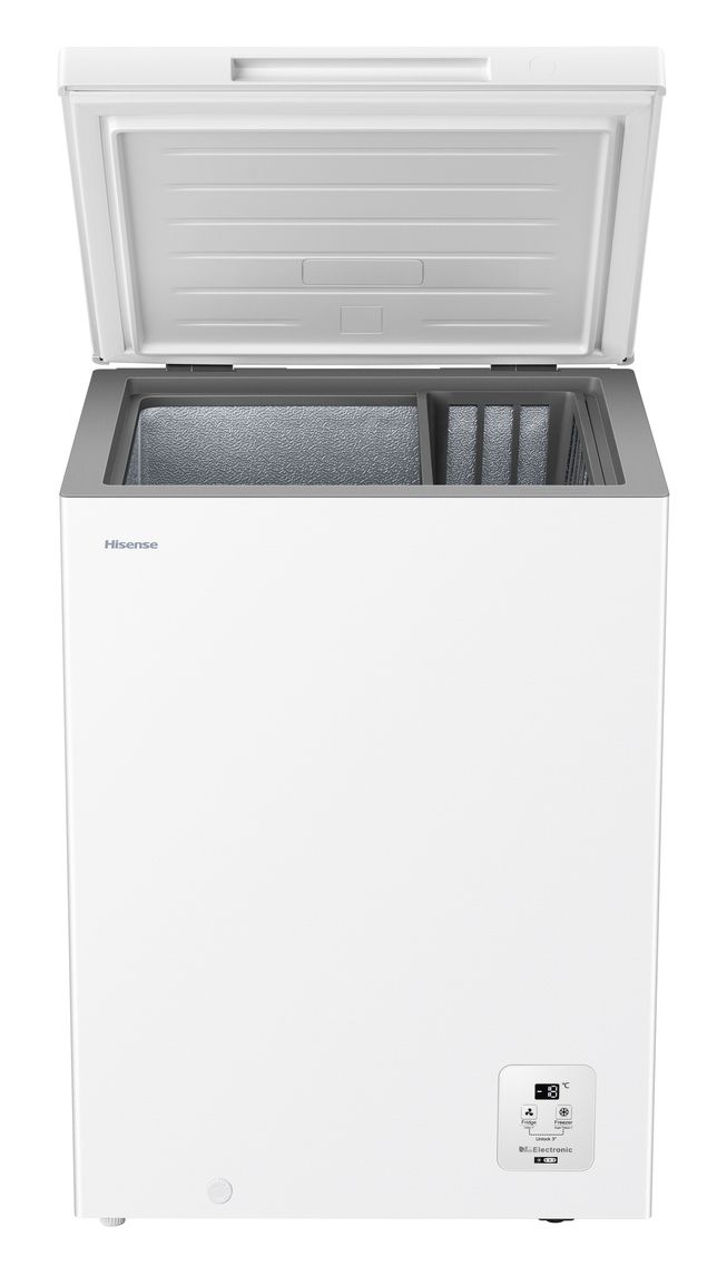 Orizzontale Hisense CONG POZ 141 L FT145N1AWE FT145N1AWEFT145N1AWE. Capacità netta congelatore: 141 L, Classe climatica: ST-T, Capacità di congelamento: 8 kg/24h, Autonomia senza energia elettrica: 10 h, Emissione acustica: 37 dB, Punteggio: 4*. Classe efficienza energetica: E, Consumo energetico annuo: 182 kWh. Colore del prodotto: Bianco