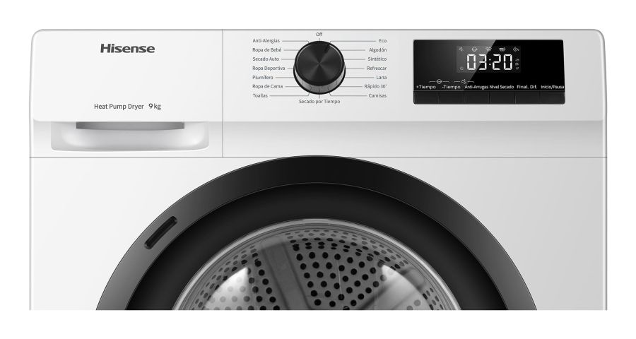Asciugatrici Hisense DHQE900UWDC 9 KG 15 PROG CL D CON DISPLAY DHQE900UWDCDHQE900UWDC. Posizionamento dell'apparecchio: Libera installazione, Tipo di carica: Caricamento frontale, Colore del prodotto: Bianco. Profondità: 645 mm, Larghezza: 595 mm, Altezza: 845 mm. Larghezza imballo: 670 mm, Altezza imballo: 885 mm, Peso dell'imballo: 48 kg