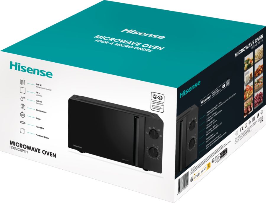 MICROONDE + GRILL Hisense H20MOBP1HI FORNO MICROONDE INVERTER 20LT 700W NERO H20MOBP1HIH20MOBP1HI. Posizionamento dell'apparecchio: Superficie piana, Tipo di prodotto: Solo microonde, Capacità interna: 20 L, Potenza Microonde: 700 W, Tipo di controllo: Manopola, Colore del prodotto: Nero