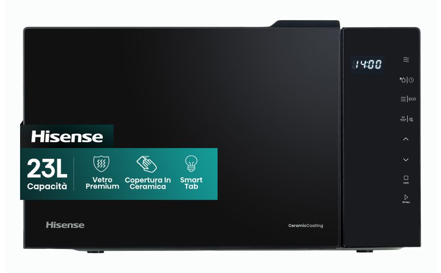 MICROONDE + GRILL Hisense H23MOBS5H4 FORNO MICROONDE DIGITAL23LT DISPLAYTOUCH 800W NERO H23MOBS5H4H23MOBS5H4. Posizionamento dell'apparecchio: Superficie piana, Tipo di prodotto: Solo microonde, Capacità interna: 23 L, Potenza Microonde: 800 W, Display incorporato, Tipo di display: LED, Tipo di controllo: Touch, Colore del prodotto: Nero