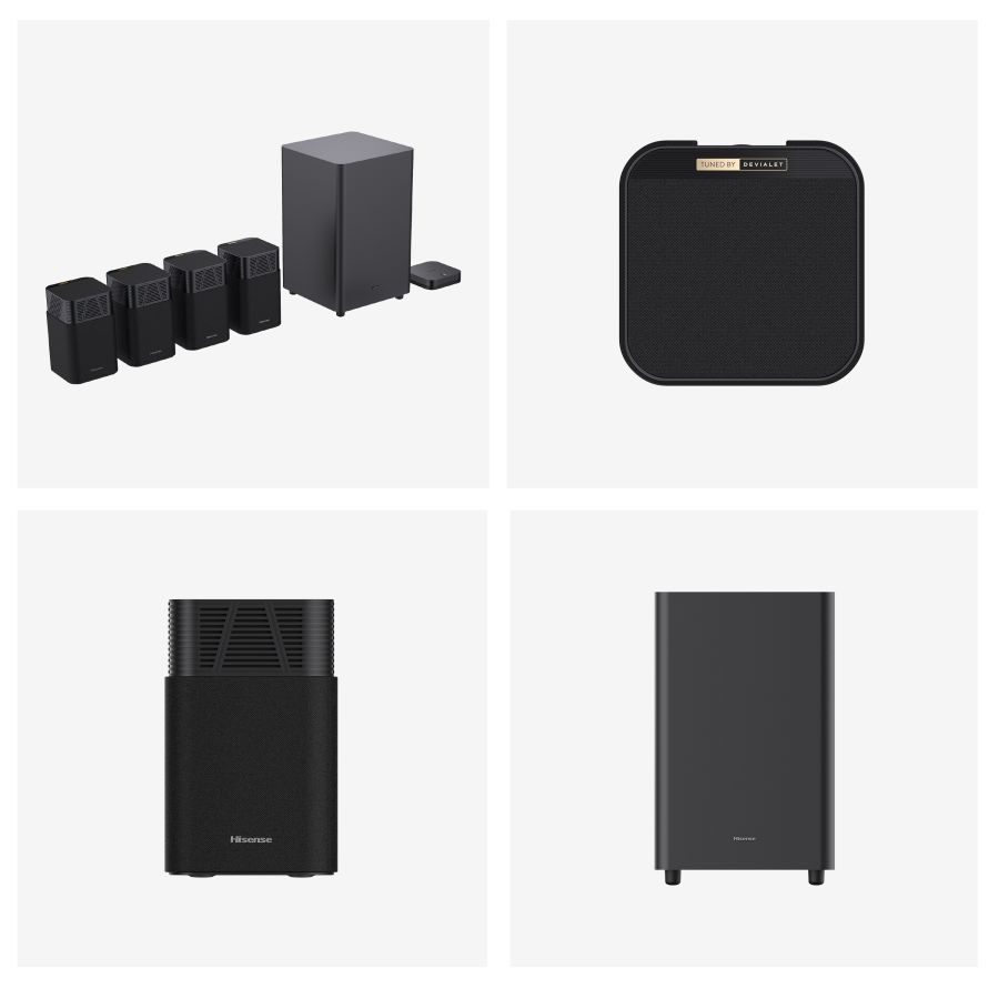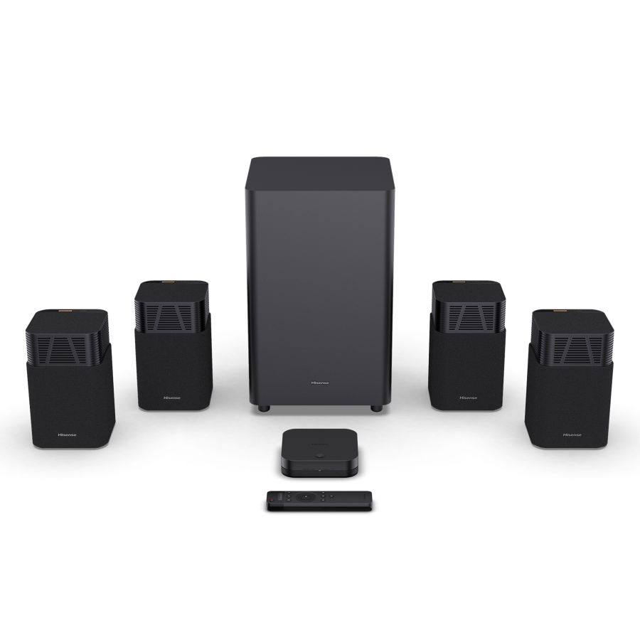 Sound Bar Hisense HT-SATURN 12BB0979741HT Saturn. Sistema audio: 4.1.2 canali, Potenza in uscita (RMS): 720 W, Formato audio integrato: DTS:X, Dolby Atmos, Dolby Digital Plus. Potenza RMS dell'altoparlante soundbar: 480 W. Potenza RMS subwoofer: 240 W. Colore del prodotto: Nero, Formati audio supportati: DTS, FLAC, MP3, PCM, WAV, WMA. Tecnologia di connessione: Con cavo e senza cavo