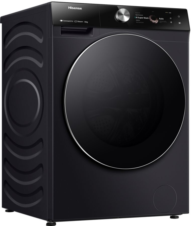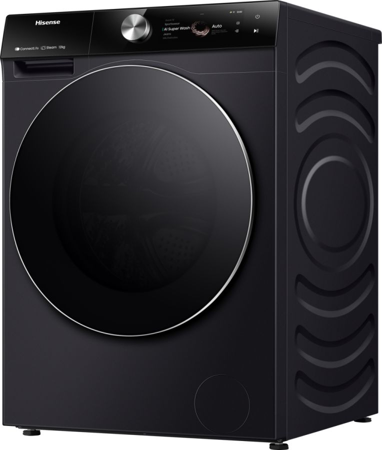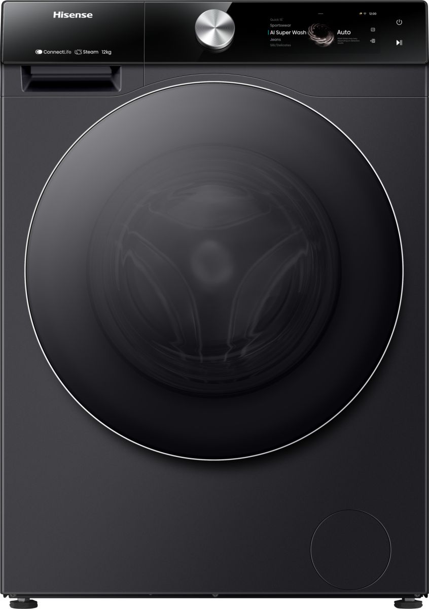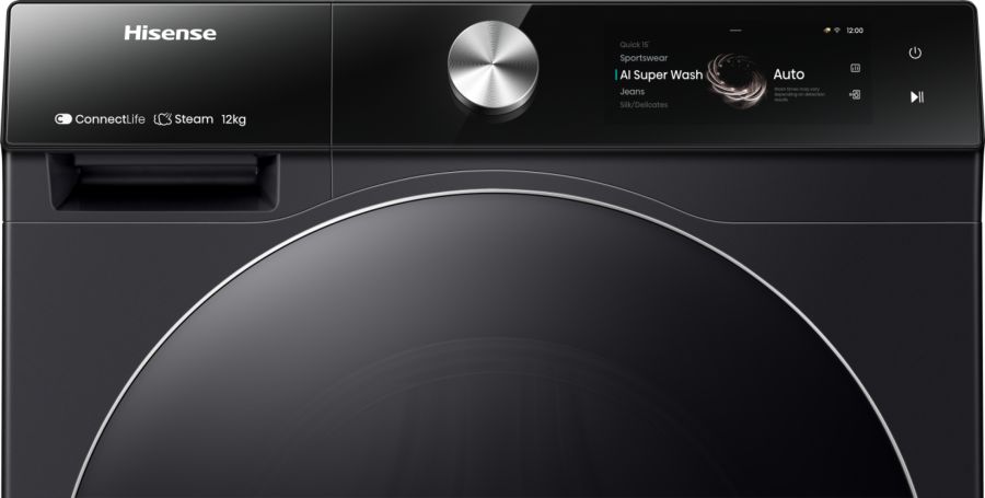 Tecnologie Hisense (cura dei vestiti) AI Super Wash, Allergy Care, Auto Dose, Blocco bambini, ConnectLife, Pulizia tamburo, Drum Light, Durable Inverter, Favourite, Hygiene Guard+, Jet Wash, Pause & Add, Lavaggio rapido, Self-Diagnostic, Smart Assist, Smart Link, Vapore, TFT Intuitive Display