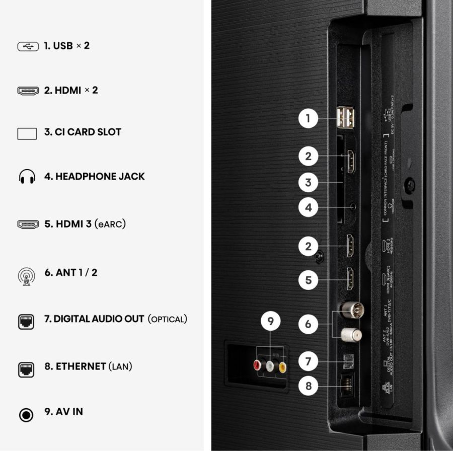 Tecnologie Hisense (AV/TV) Dolby Vision? IQ, HDR10+, MEMC (Motion Estimation Motion Compensation), VIDAA Smart TV, Game Bar, Adaptive Light Sensor