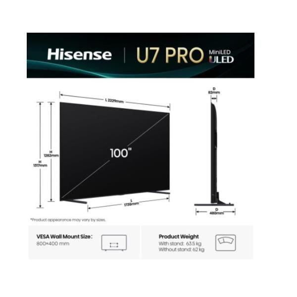 TV Hisense PRO LED 4K UHD VIDAA REFRESH RATE 165HZ MINILED SMART165 100U7Q 100U7Q-PRO100 U7Q PRO MINI LED 4K UHD SMART VIDAA REFRESH RATE 165HZ