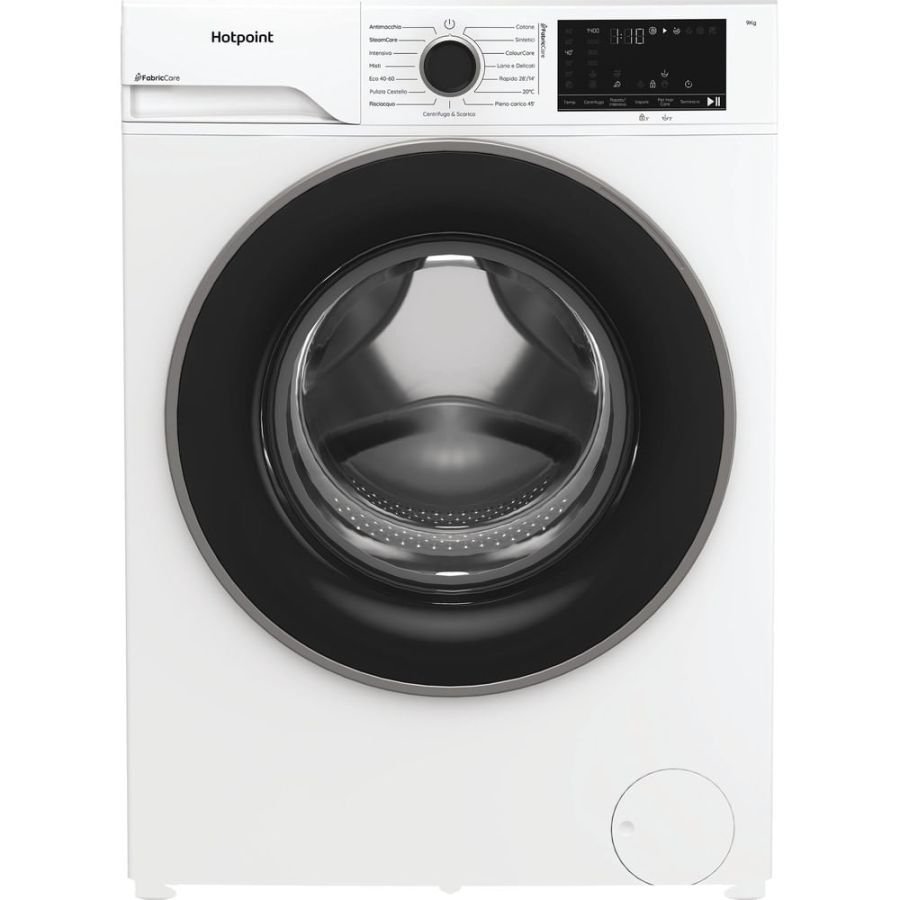 Lavatrici caricamento frontale Hotpoint HB93CAREIT LAVATRICE CF 9KG A -30% INV GT0205030205Questa lavatrice a carica frontale Hotpoint Ariston, a libera installazione, offre un capiente cestello da 9 kg, ideale anche per i carichi più voluminosi. Con un'efficienza energetica A-30%, garantisce consumi ancora più ridotti: ti permette di risparmiare fino al 30% di energia rispetto alla soglia minima per accedere alla classe A. La centrifuga raggiunge i 1400 giri/minuto, assicurando risultati rapidi ed efficaci. Il design, elegante e pulito, è caratterizzato dal classico colore bianco, che si adatta facilmente a qualsiasi ambiente domestico.