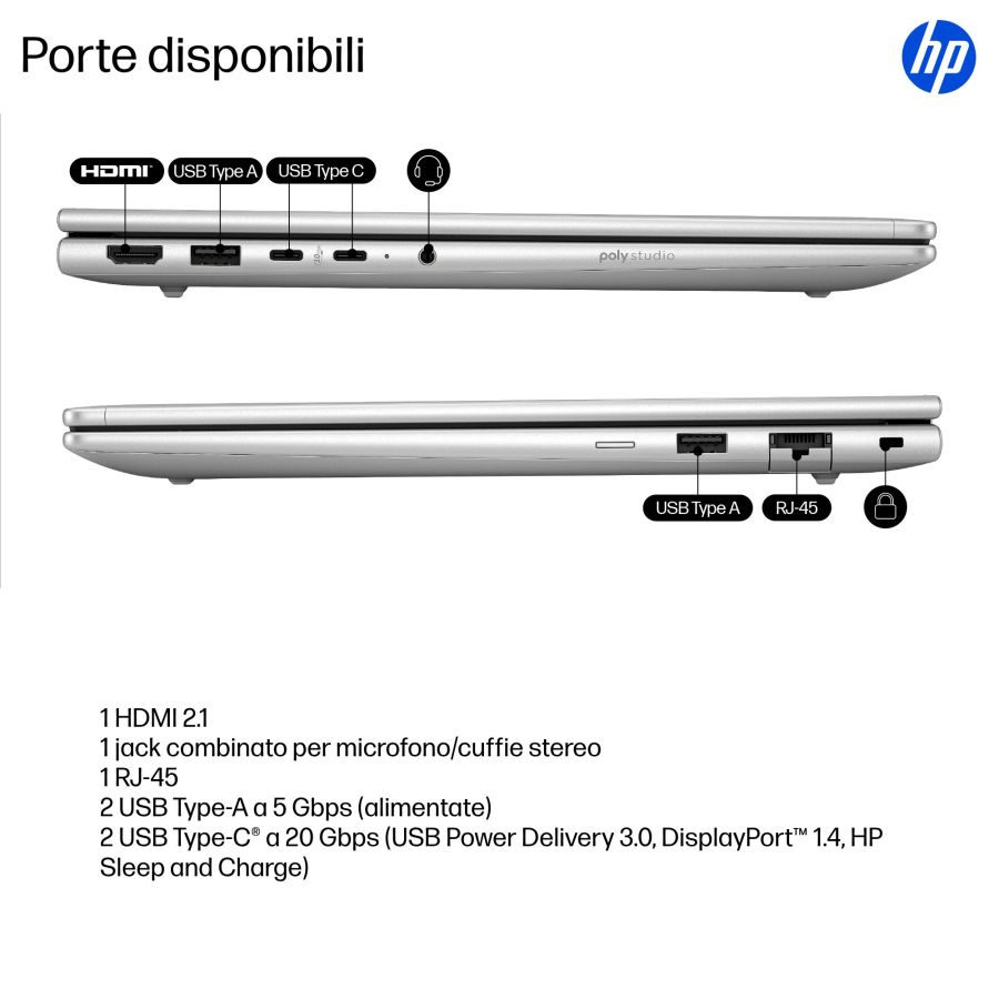 Notebook HP Hewlett Packard D76J9ET#ABZ HP P4G1I14 U5 225U 14 16GB/512 D76J9ETEspandete il vostro potenziale con un notebook resistente e a prova di futuro