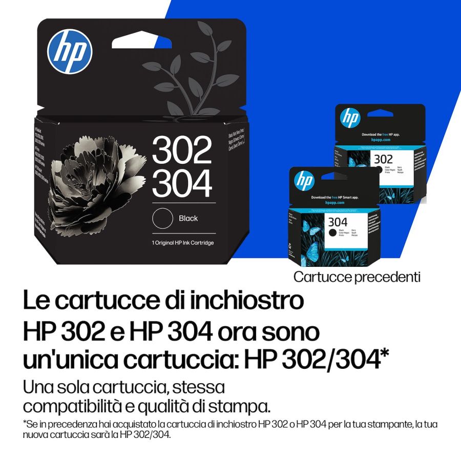 Le cartucce di inchiostro HP 302 e 304 ora sono un'unica cartuccia. La nuova cartuccia HP 302/304 offre stampe straordinarie e prestazioni affidabili su cui fare affidamento.