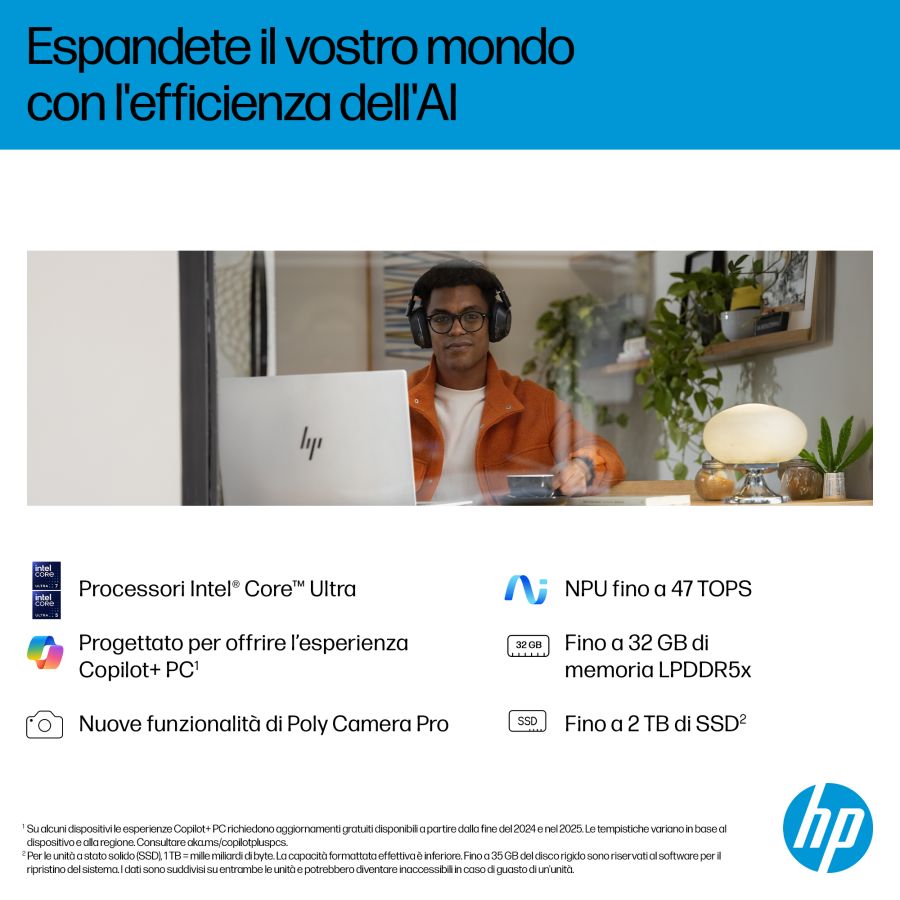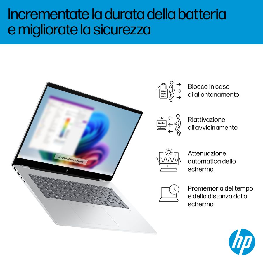 Notebook HP Hewlett Packard HP OmniBook 7 Laptop Next Gen AI 17-dc0001nlx OMNI7 U7 32/1T 4050 D8ZW1EA#ABZ D8ZW1EAUn PC basato sull?AI per affrontare le condizioni più impegnative.