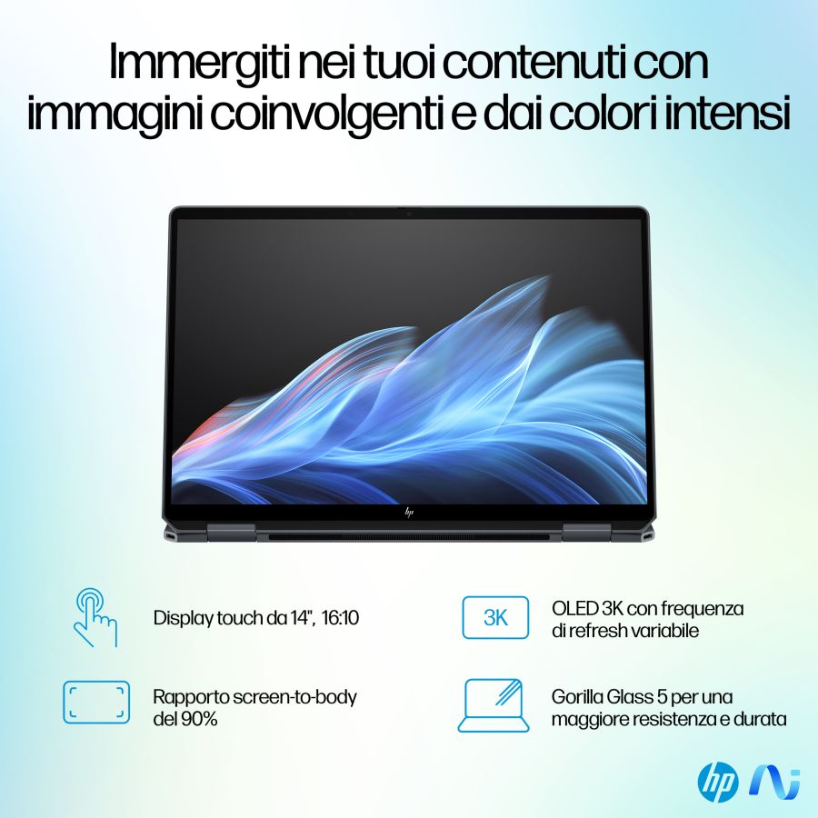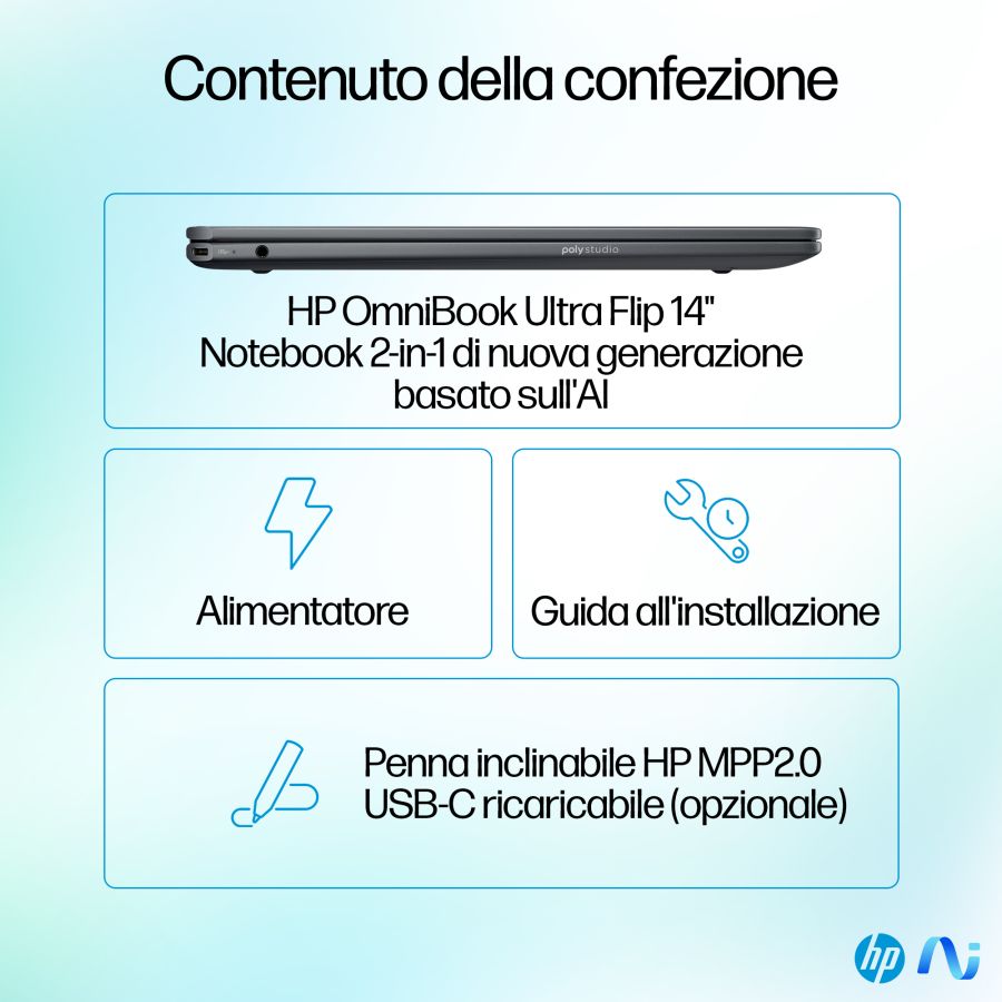Notebook HP Hewlett Packard HP OmniBook Ultra Flip Laptop 14-fh0011nl B5QD0EA#ABZ B5QD0EAHP OmniBook Ultra Flip: la tua creatività potenziata dall'AI