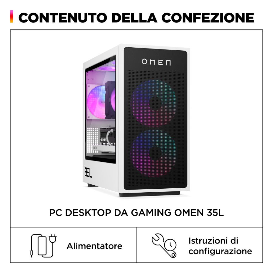 Con il PC desktop da gaming OMEN 35L puoi esprimere tutto il tuo potenziale alle massime prestazioni. Integra il nuovo processore Intel Core?[1] e una scheda grafica avanzata, oltre a componenti a marchio OMEN per potenza e prestazioni termiche ottimali. Progettato per l'upgrade senza attrezzi, può essere facilmente personalizzato in base alle tue esigenze di gaming.