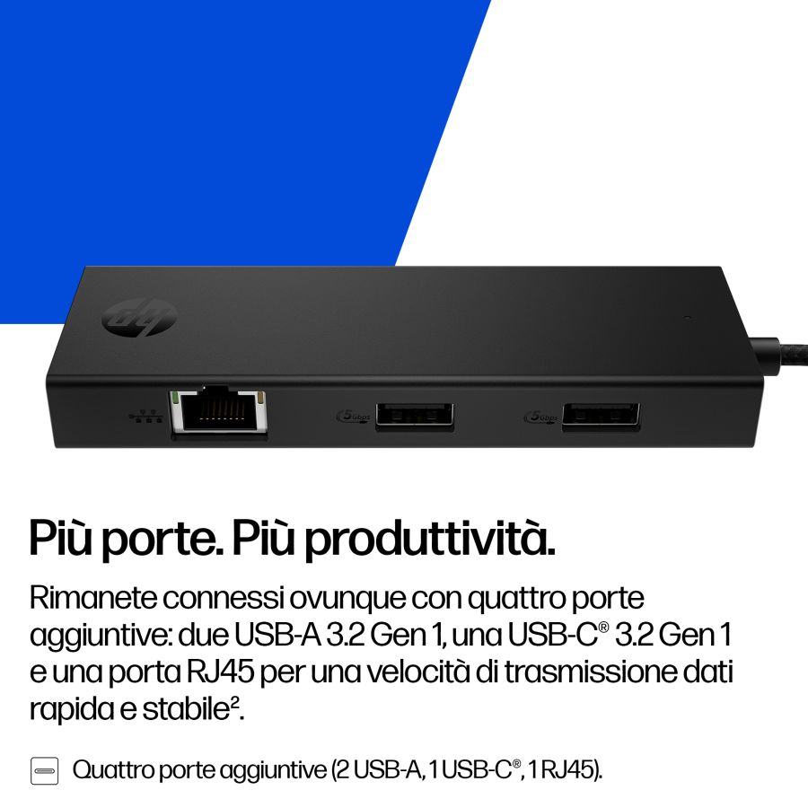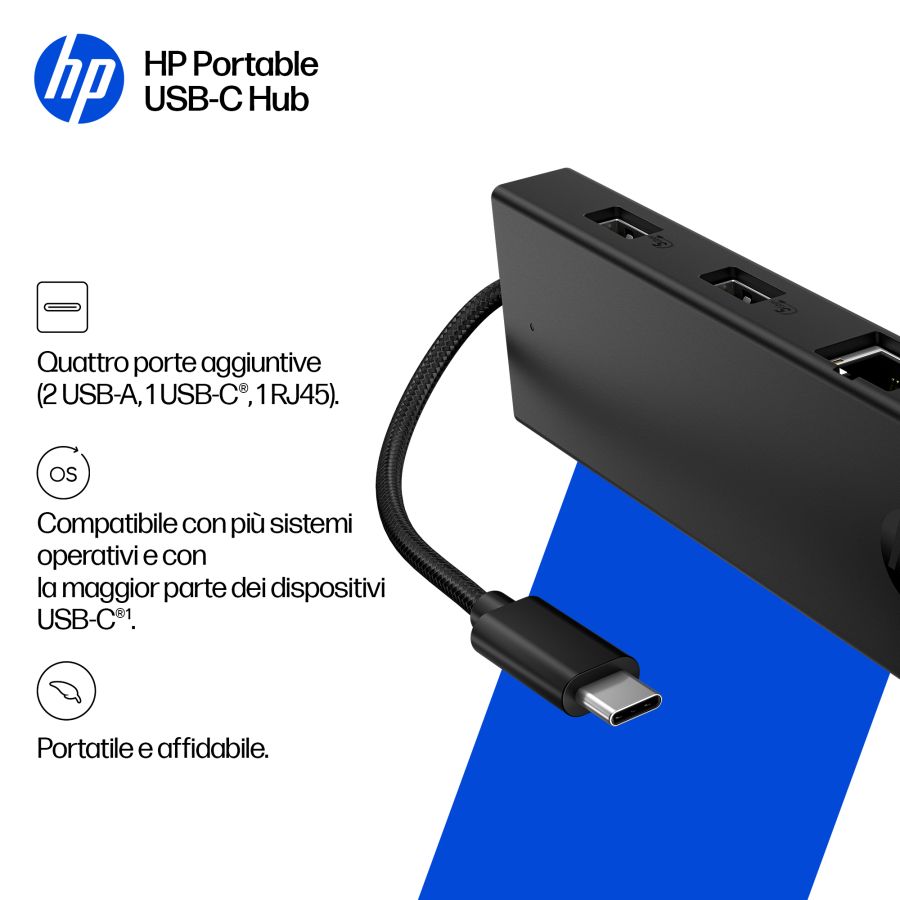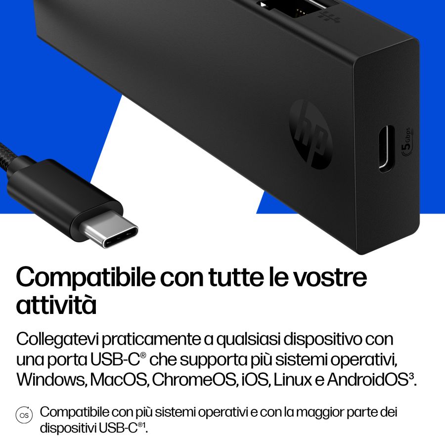 HUB USB HP Hewlett Packard PORTABLE USB-C HUB ITALY ITALIAN LOCALIZATION 22BB0993727Connettività compatta