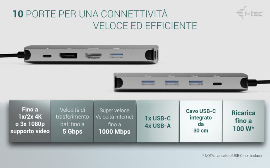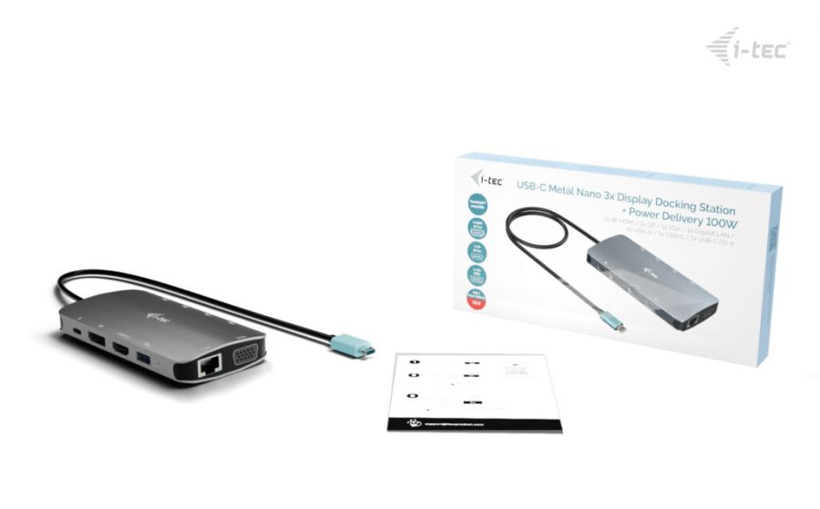 Docking Station/Espansioni I-TEC Docking station NANO C31NANOTRIDKPDUna docking station USB-C compatta ma potente che espande il tuo laptop o tablet con un?ampia gamma di porte, incluso il supporto fino a tre monitor esterni*. Basta collegarla tramite il cavo USB-C integrato per ottenere immediatamente accesso a porte USB ad alta velocità, Ethernet Gigabit e a un ambiente di lavoro multi-monitor ? senza necessità di installare driver.