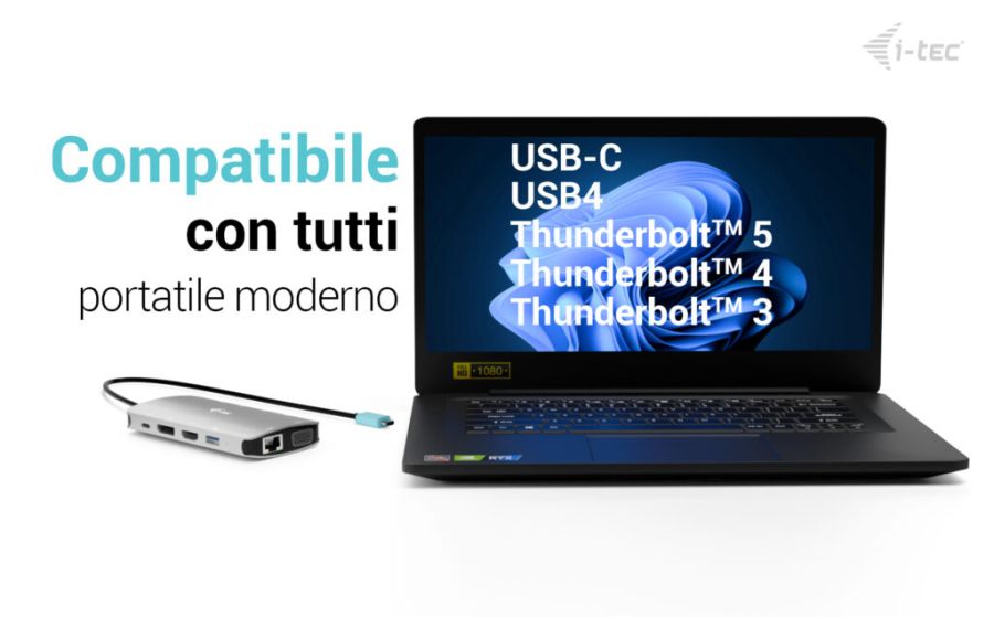 La docking station è compatibile con un?ampia gamma di dispositivi, inclusi laptop e tablet dotati di interfacce USB-C, USB4 o Thunderbolt?.