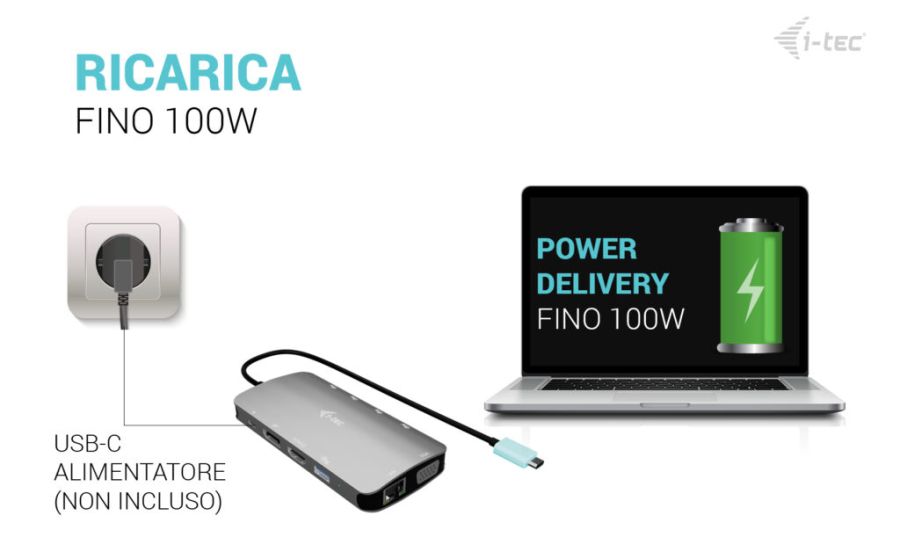 ** La potenza massima del Power Delivery dipende dalle capacità del dispositivo collegato.