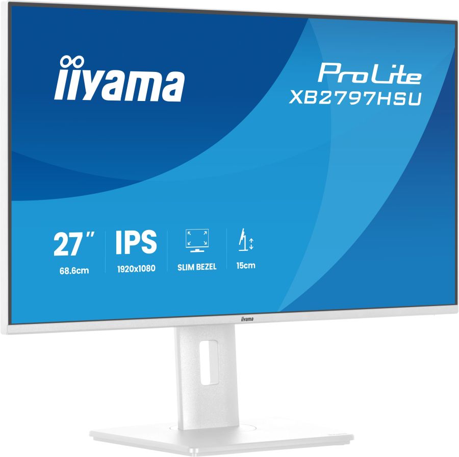 da 23 a 36 pollici IIYAMA 27 FHD Business IPS XB2797HSU-W1ProLite XB2797HSU-W1. Dimensioni diagonale schermo: 68,6 cm (27"), Risoluzione del display: 1920 x 1080 Pixel, Tipologia HD: Full HD, Tecnologia display: LED, Superficie display: Opaco, Tempo di risposta: 1 ms, Rapporto d'aspetto nativo: 16:9, Angolo di visualizzazione (orizzontale): 178°, Angolo di visualizzazione (verticale): 178°. Altoparlanti incorporati. Hub USB integrato, Versione dell'hub USB: 3.2 Gen 1 (3.1 Gen 1). Montaggio standard VESA, Regolazione altezza. Colore del prodotto: Bianco