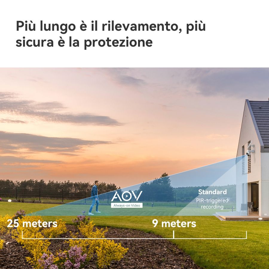 L'AOV PT è dedicato a rendere l'esperienza il più possibile priva di preoccupazioni. Grazie alla batteria da 10.000 mAh abbinata al pannello solare, la telecamera dispone di un'alimentazione " green" continua.