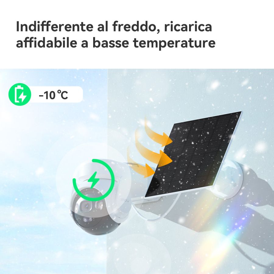 Le telecamere a batteria hanno spesso problemi con la ricarica a basse temperature. L'ultima tecnologia di Imou offre una soluzione a questo problema: anche a temperature fino a -10 °C, la batteria viene caricata.