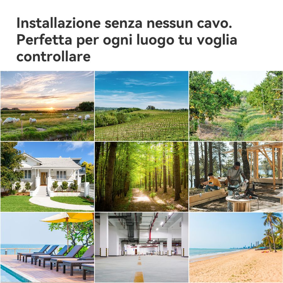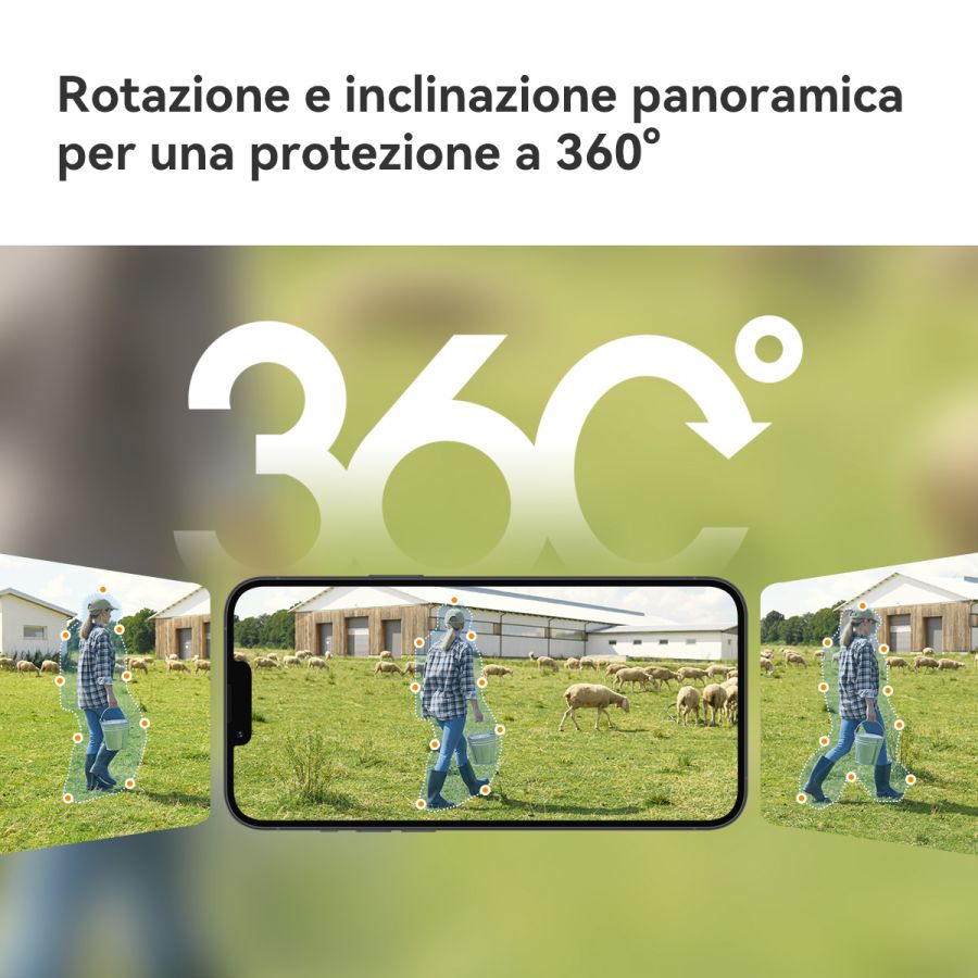 Registrazione continua 24/7 (AOV) | Durata della batteria illimitata | Connessione 4G o Wi-Fi | Rilevamento AI delle persone | Immagine 3K UHD