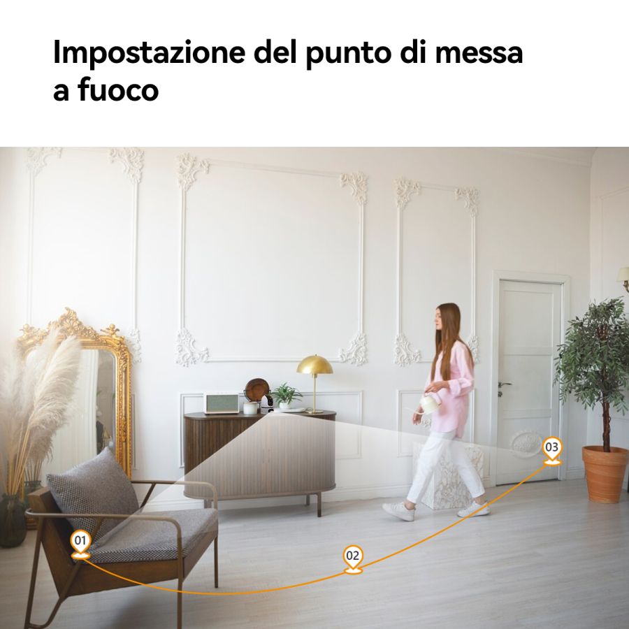 Con il supporto di IMOU SENSE?, l'intelligenza artificiale recentemente aggiornata è in grado di migliorare efficacemente l'accuratezza del rilevamento di persone e animali domestici e di seguire in modo intelligente l'obiettivo; quando si verifica un evento, oltre a inviare informazioni al telefono dell'utente, il dispositivo stesso emette un allarme.