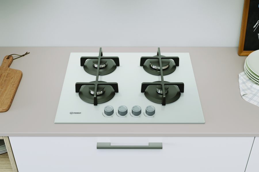 INDESIT P/COTTURA ING 61T/WH 1 1 VETRO 4 FUOCHI, VETRO,GRIGLI GHISA