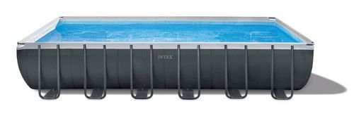 Piscine Intex Piscina Intex 26364 ULTRA XTR FRAME con pompa a sabbia Antracite 13BB0818638Piscina ultra frame intex 26364 (7.32m x 3.66m x1.32m) rettangolare con elegante struttura portante e scaletta, pompa a sabbia per il filtraggio dell'acqua. La piscina contiene 31,805 L di acqua. Teli di copertura e base, scaletta doppia kit di pulizia de luxe. Robusta ed elegante ottima per godersi indimenticabili momenti di relax nel proprio giardino. Il modello di piscina intex 26364 ultra frame rettangolare è l'elegante evoluzione delle tradizionali piscine fuori terra intex ultra frame. E' inoltre una versione più facile da assemblare grazie ad un ottimo metodo per cui non servono più i pin per collegare le parti metalliche. La struttura metallica della piscina è di acciaio galvanizzato per una ottima resistenza alla ruggine e alla corrosione. Ha uno spessore ed una sezione ottimi rispetto i modelli frame tradizionali per aumentare la resistenza alla pressione dell'acqua ed all'utilizzo da parte del consumatore. Tutti gli spigoli sono arrotondati e smussati per la sicurezza dei bambini. Il PVC utilizza la tecnologia super ? tough e si compone di tre strati: uno strato interno ed esterno in PVC spesso e resistente e uno intermedio in poliestere.
