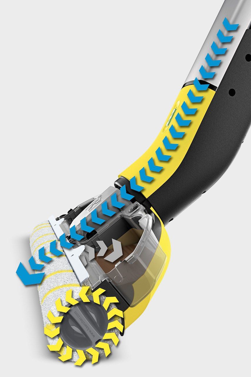 Spazzolone a vapore - Con funzione aspirapolvere - Grazie al sistema a due serbatoi i rulli rotanti sono costantemente bagnati con acqua fresca, mentre lo sporco raccolto finisce nel serbatoio dell'acqua di scarico - non c'è nessun contatto con lo sporco. Il dispositivo lascia i pavimenti fino al 20% più puliti dei mop tradizionali*. Grazie alla sua forma snella e allo snodo flessibile, l'EWM 2 non solo arriva facilmente sotto i mobili, ma è anche poco ingombrante da riporre dopo l'utilizzo. Il tempo di asciugatura del pavimento è di soli due minuti circa, il che lo rende perfettamente adatto all'uso su tutti i tipi di pavimenti duri (ad esempio piastrelle, parquet, laminato, PVC e vinile). La potente batteria agli ioni di litio ha un'autonomia di circa 20 minuti. Questo permette di pulire fino a 60 m² di pavimento con una sola carica.