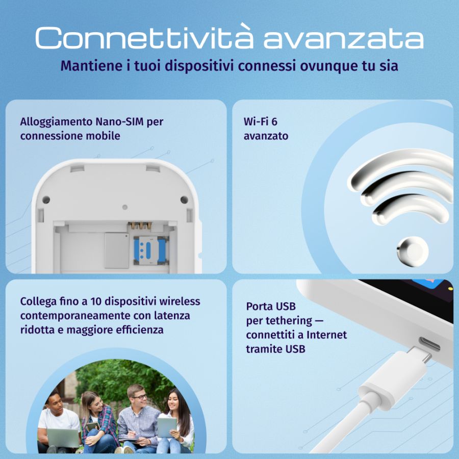 Il tuo hotspot Wi-Fi 6 tascabile per una connettività 4G LTE veloce e sicura, ovunque tu sia!