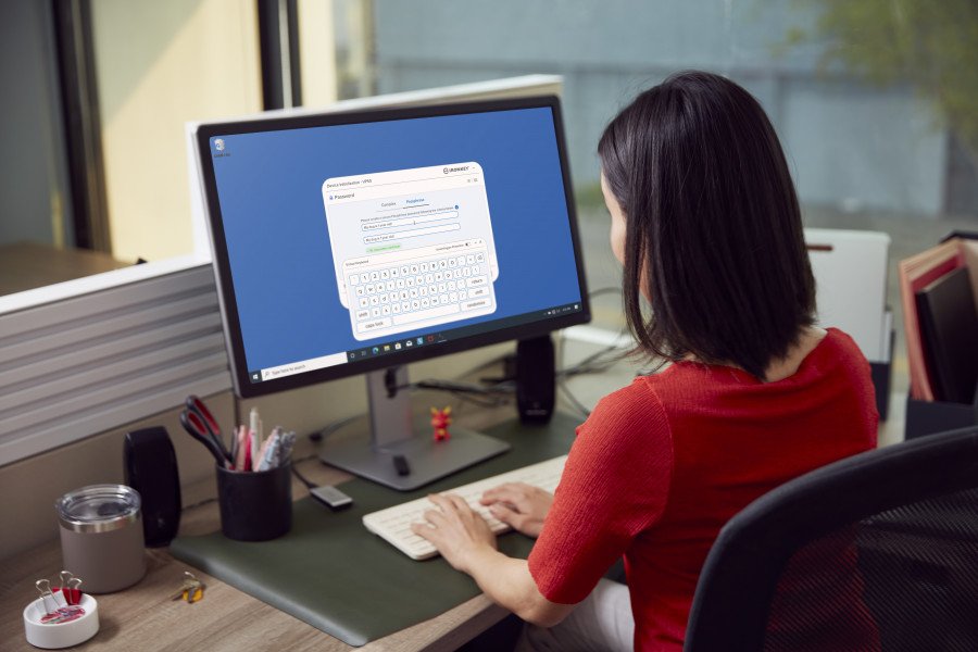 Ridurre frustrazione e tentativi di accesso non riusciti abilitando il pulsante con il simbolo dell'occhio per visualizzare la password digitata. Utilizzare la tastiera virtuale per proteggere l'inserimento della password da keylogger e screenlogger.