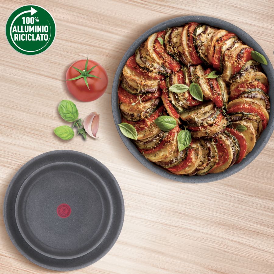 Pentole Lagostina 012164031016 ECO129237Ingenio Mineralis GREEN è la linea antiaderente ad effetto marmorizzato firmata Lagostina in alluminio 100% riciclato. Elemento distintivo della linea è il manico amovibile, compatibile con tutti i corpi pentola, dotato di ben 3 brevetti e resistente fino a 10Kg. Ingenio è adatto per preparazioni dal piano cottura, al forno, al frigo, è ideale per servire il cibo direttamente in tavola ed in più è salva spazio perchè perfettamente impilabile. Le padelle hanno un fondo adatto all'induzione. Inoltre, sono dotate di Thermosignal, l'esclusivo bollo posto al centro che cambia colore a 180° ed indica il momento perfetto per iniziare la cottura. Ingenio: multiuso, monomanico, salvaspazio