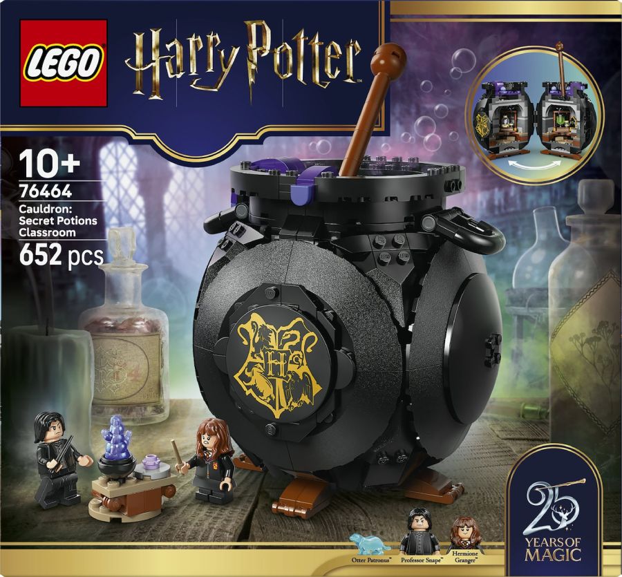 Costruzioni Lego Harry Potter - Calderone: Lezione di pozioni segrete - Regala ai bambini un incantevole set di costruzione giocattolo LEGO® Harry Potter? (76464) per l?esposizione e il gioco: un magico calderone con una classe di pozioni segreta al suo interno. Sposta il bastoncino e rivela l?aula dettagliata con tavoli rimovibili, boccette di pozioni e ingredienti in mattoncini LEGO per diverse pozioni. Ricrea una lezione di pozioni a Hogwarts? con le minifigure del Professor Piton e Hermione Granger?. E cerca il Patronus? Lontra di Hermione, parte della collezione di Patronus LEGO Harry Potter del 25° anniversario (in set disponibili separatamente) e 1 dei 14 ritratti di Hogwarts collezionabili. Il calderone bollente in mattoncini è una fantastica decorazione Harry Potter per la cameretta tra un gioco e l?altro e un?accattivante decorazione di Halloween. Regala questo versatile kit per i bambini e le bambine e tutti i fan di Harry Potter dai 10 anni in su. E costruisci con confidenza utilizzando l?app LEGO Builder: ingrandisci, ruota in 3D e tieni traccia dei progressi con istruzioni digitali facili da seguire. Il set contiene 652 pezzi.