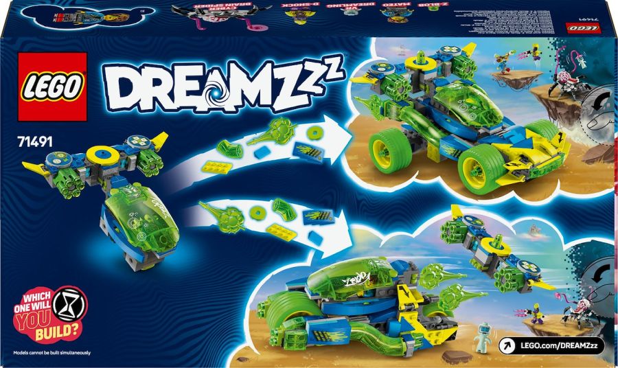 LEGO® DREAMZzz? (71491) - Il fuoristrada da corsa di Mateo e Z-Blob LEGO® DREAMZzz? (71491) - Sfreccia nel Mondo dei Sogni con il set costruibile Il fuoristrada da corsa di Mateo e Z-Blob LEGO® DREAMZzz? (71491) per i bambini e le bambine dagli 8 anni in su. Ispirato alla serie TV, il set con veicoli consente ai bambini di aiutare Mateo e Z-Blob a salvare un Dreamling VR dal Cyber brain ragno! Con 2 opzioni di costruzione, i giovani sognatori si divertiranno a costruire il modello principale prima di ricostruirlo in un?auto da corsa fuoristrada o in una veloce motocicletta giocattolo. I fantastici dettagli includono un parabrezza rimovibile, ruote girevoli e 2 shooter a sei colpi, oltre a moduli rimovibili che possono essere usati con altri set della gamma LEGO DREAMZzz 2025. L?azione prende vita con l?eroe Mateo, il cattivo D-Shock e Z-Blob, mentre il Cyber brain ragno e il Dreamling VR ispirano il gioco di fantasia.