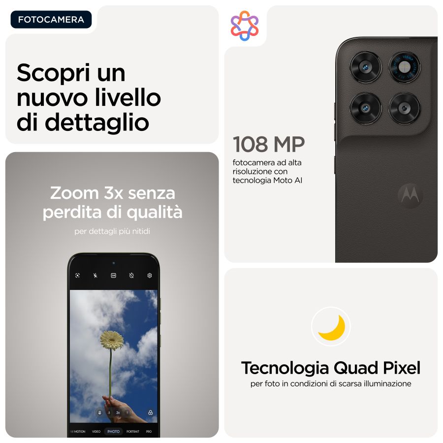 GSM/UMTS/HSDPA Lenovo MOTO G77 8/256 BLACK OLIVE PBAW0036ES PBAW0036ESScopri un nuovo livello di dettaglio