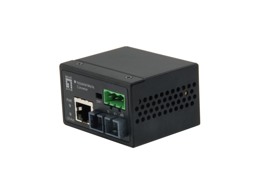 Media Converter. LEVELONE IEC-4001 - MEDIA CONVERTER INDUSTRIALE RJ45-SC FAST ETHERNET, MULTI-MODE, 2Km, - IEC-4001IEC-4001. Velocità massima di trasferimento dati: 100 Mbit/s, interfaccia convertitore input: 10Base-T, 100Base-TX, interfaccia convertitore output: 100Base-FX. Distanza massima di trasferimento: 2000 m, Struttura della modalità di fibra: Modalità multipla. Indicatori LED: Attività, Potenza, status, Colore del prodotto: Nero, Materiale della scocca: Alluminio. Connettore a fibra ottica: SC, Tecnologia di connessione: Cablato. Voltaggio di ingresso: 12 - 60 V, Consumi: 1,44 W