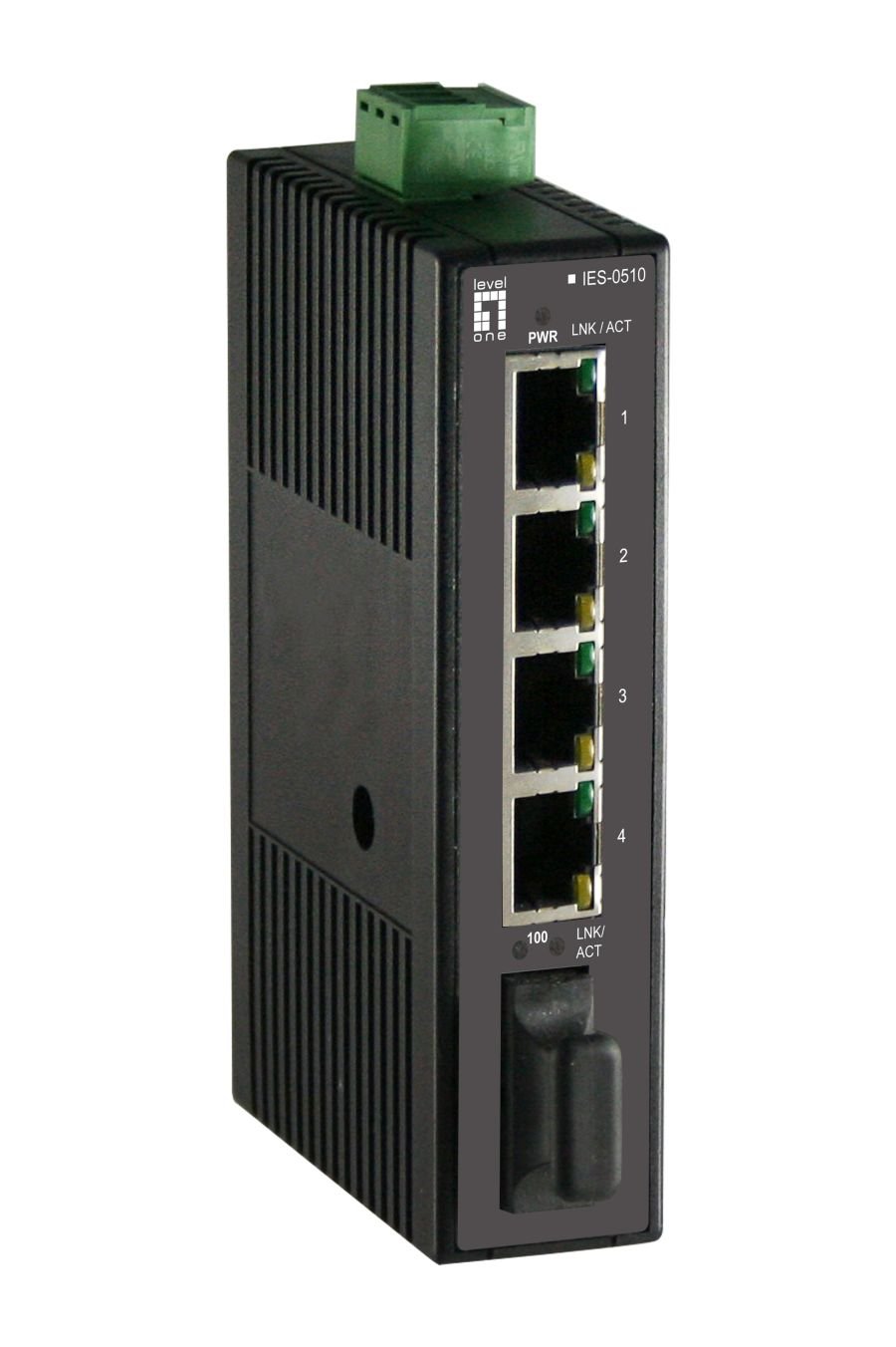 Switch Stand-Alone LEVELONE IES-0510 - SWITCH INDUSTRIALE 5-PORTE DIN-RAIL, 1x SC MM, -20°/+70° FASTETHERNET IES-0510La porta a fibre è disponibile con SC con un collegamento in fibra che può raggiungere fino a 120 km (74.4 miglia)