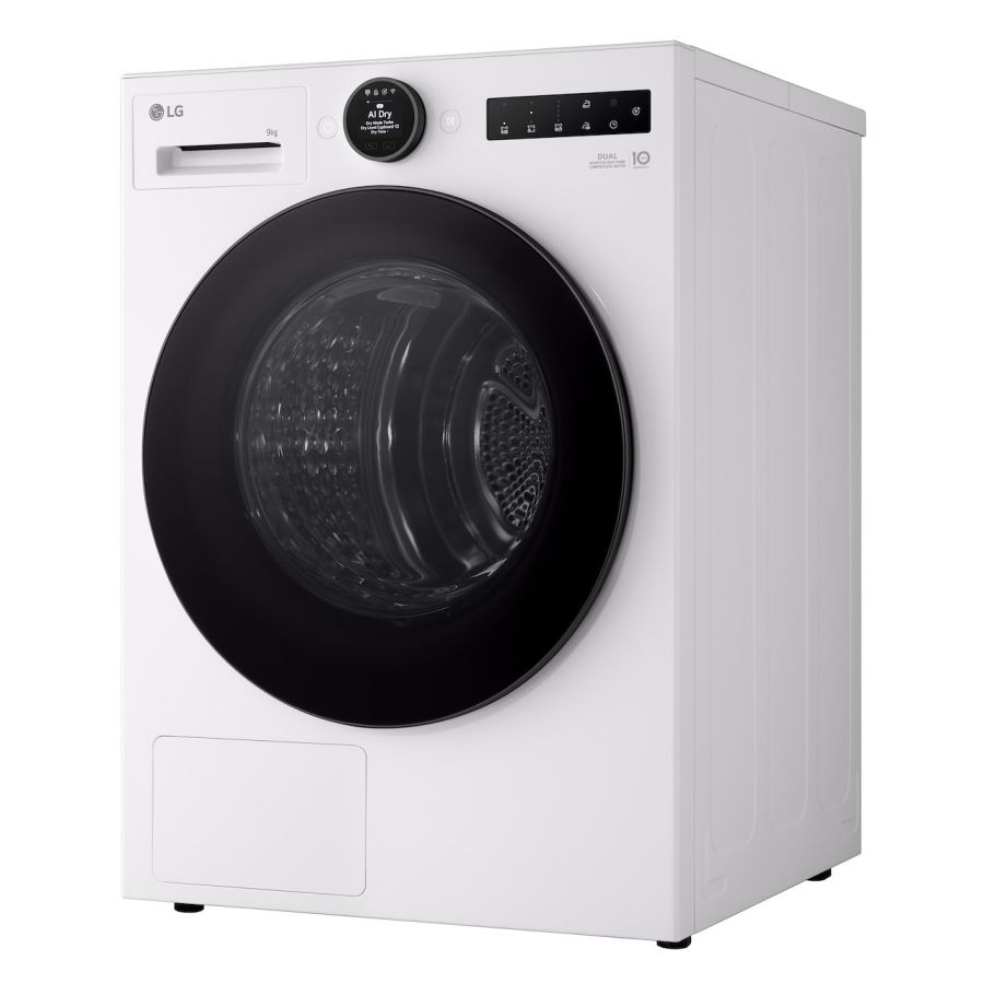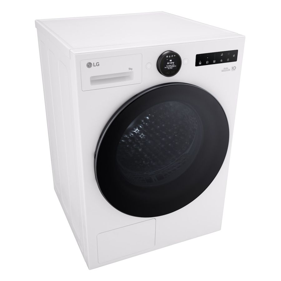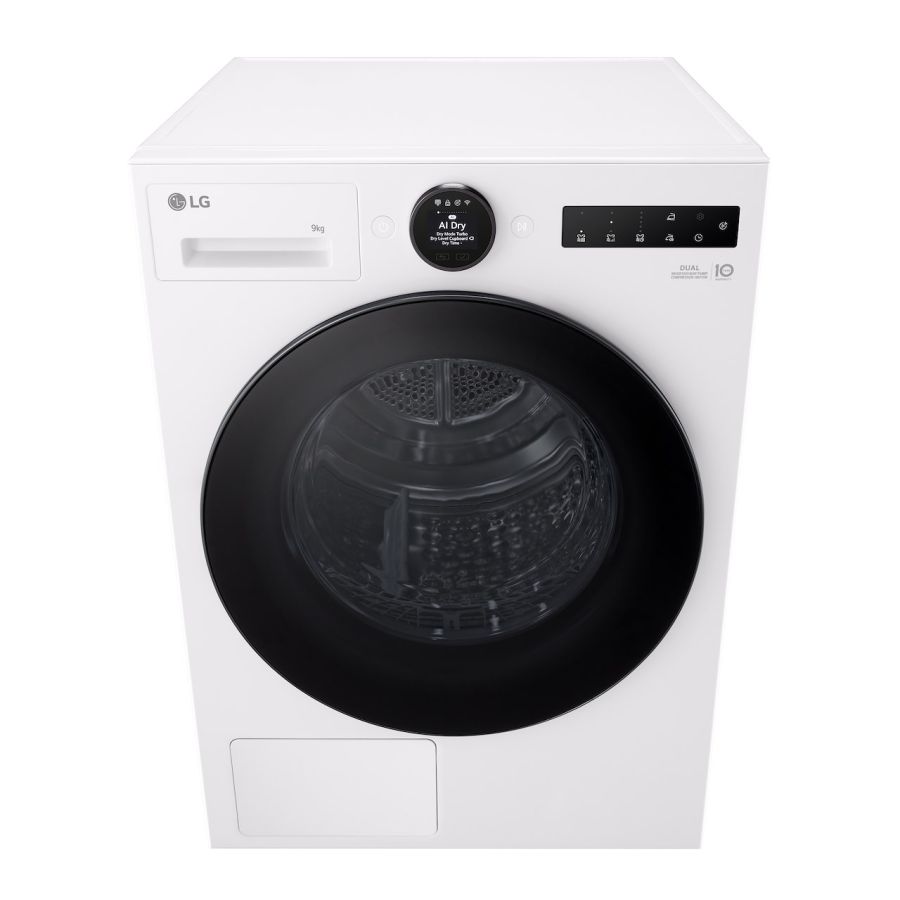 Asciugatrici LG RHX7009TWB Asciugatrice 9 Kg A Pompa di Calore Motore Dual Inverter Wi-Fi AI Cl 034DGQAXBWRHX7009TWB. Posizionamento dell'apparecchio: Libera installazione, Tipo di carica: Caricamento frontale, Sistema di asciugatura: Pompa di calore. Capacità cestello: 9 kg, Classe di efficienza della condensazione: B, Programmi di asciugatura: Cotone, Eco, Mix, Sintetico, Sport, Igiene/Allergy Care, Programmato, Download cycle. Applicazioni per il controllo supportate: ThinQ, Funzioni delle app: Diagnostica remota, Avvio a distanza, Monitoraggio remoto. Classe efficienza energetica: B, Consumo energetico per 100 cicli: 92 kWh, Consumo energetico: 0,92 kWh. Profondità: 660 mm, Larghezza: 600 mm, Altezza: 850 mm