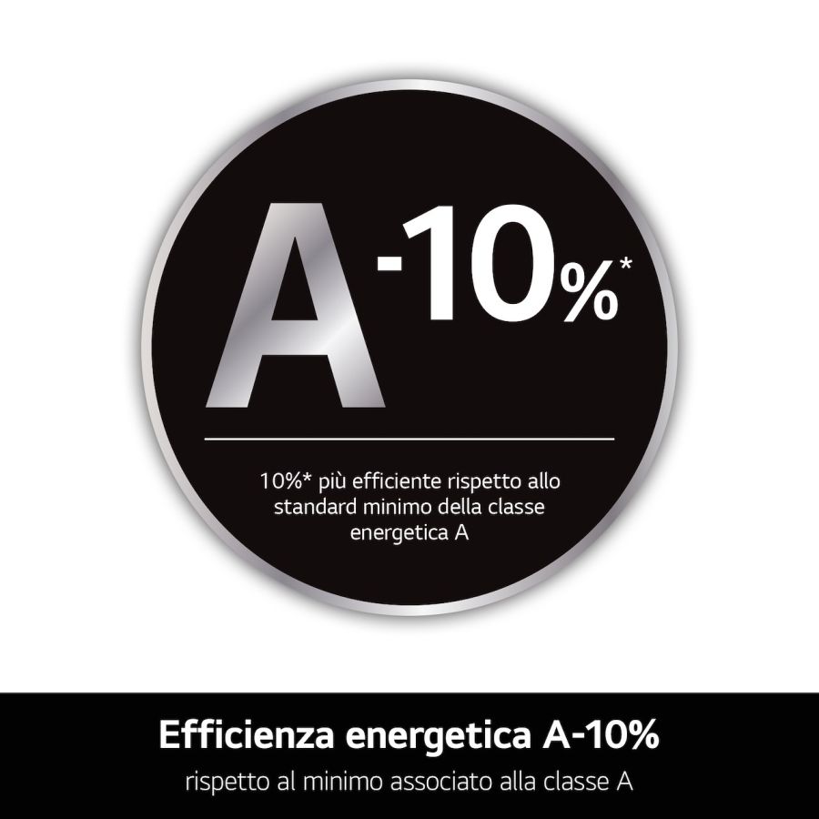 Abbiamo a cuore l'efficienza dei nostri elettrodomestici, in modo che possano pesare il meno possibile sulla tua bolletta dell'energia elettrica. Questa lavatrice ti offre un'efficienza elevatissima, perché è il 10%* più efficiente rispetto a quelle tradizionali in classe A.